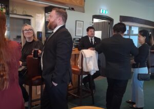 All assembled for pre-dinner drinks before making their way to the dining area.